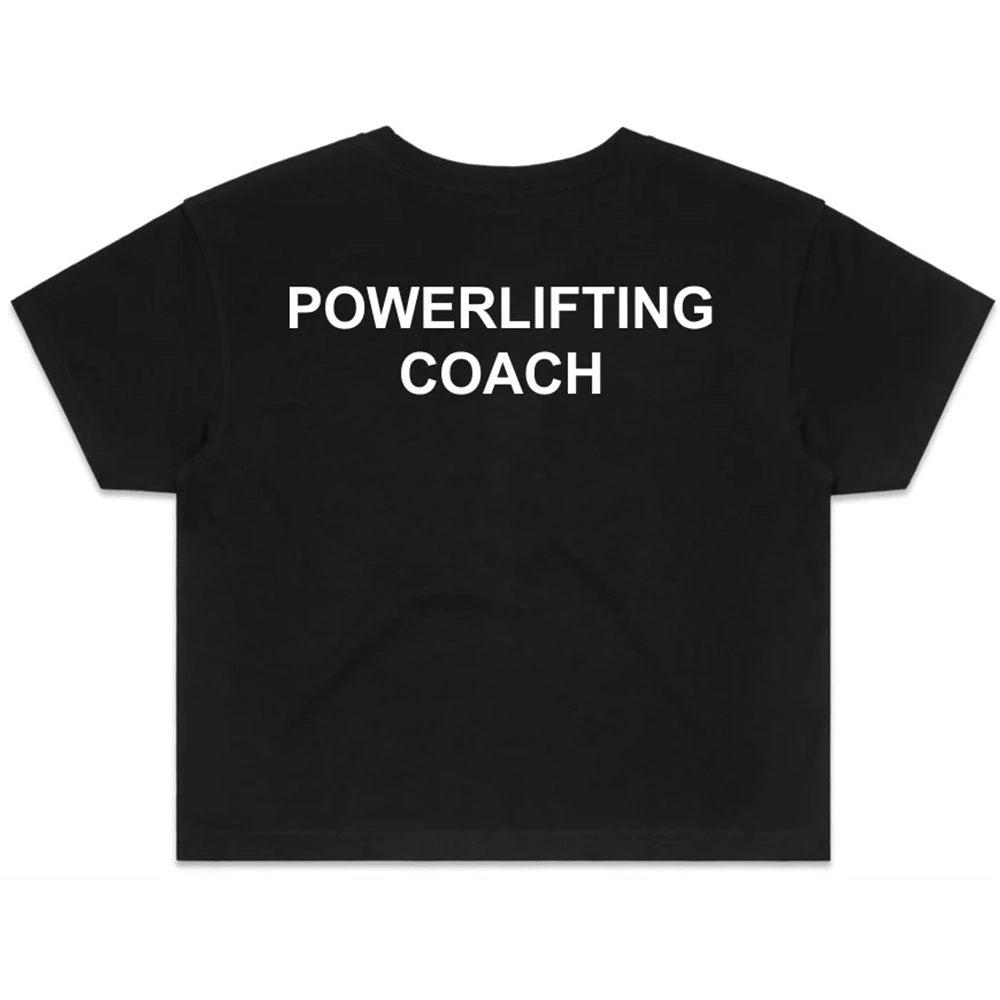 Phoenix Powerlifting Crop Tee – relaxed fit, mid-weight cropped tee made from combed cotton with dropped shoulders and preshrunk fabric. Available in Athlete, Powerlifting Athlete, Coach, Powerlifting Coach, and Assistant Coach designs, in sizes XS to 2XL.