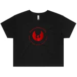 Phoenix Powerlifting Crop Tee – relaxed fit, mid-weight cropped tee made from combed cotton with dropped shoulders and preshrunk fabric. Available in Athlete, Powerlifting Athlete, Coach, Powerlifting Coach, and Assistant Coach designs, in sizes XS to 2XL.